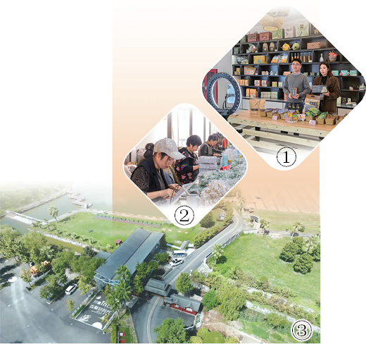 图①:杭州市余杭区鸬鸟镇前庄村村干部在“鸬鸟味·道不完”共富直播间直播带货。梁贺云 摄 图②:临海市东塍镇初心共富工坊内,村民安装彩灯零部件。张琼洁 摄 图③:临海市江南街道“最美时光in上江”共富工坊入口处航拍。闵婕 摄