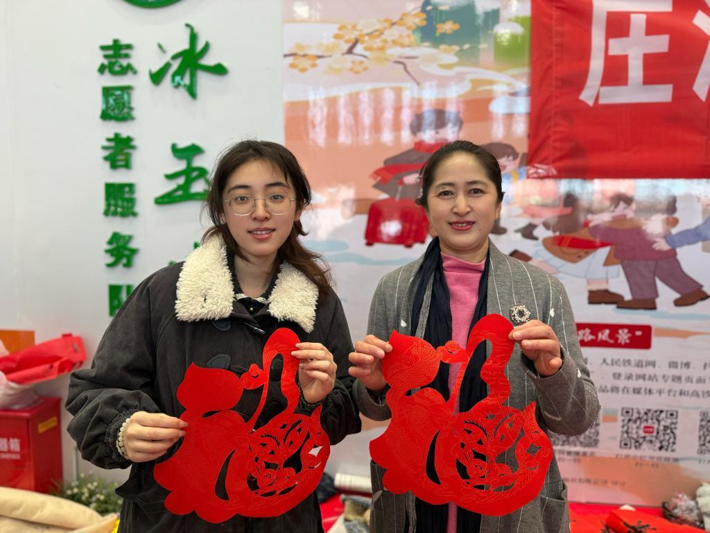 车站是春运的起点,华东理工大学硕士研究生王桐予在这里为返乡人送上一份特殊的礼物。今年寒假,她连续第三年在铁路庄河北站“支摊”,边展示剪纸技艺,边赠送作品,为车站增添了一份温暖年味。
