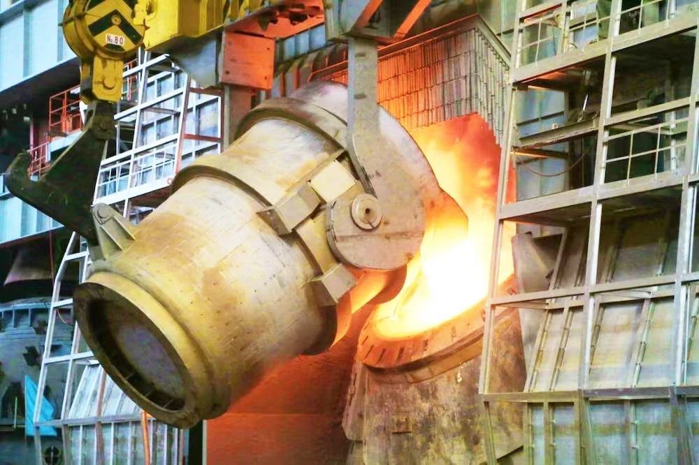 一股钢水从炼钢炉涌入钢水罐,被浇铸成一块块钢锭。智春山说:“现在都是智能化生产,可以对炼钢工艺做精准把控。早年炼钢,可没有这么‘容易’!”