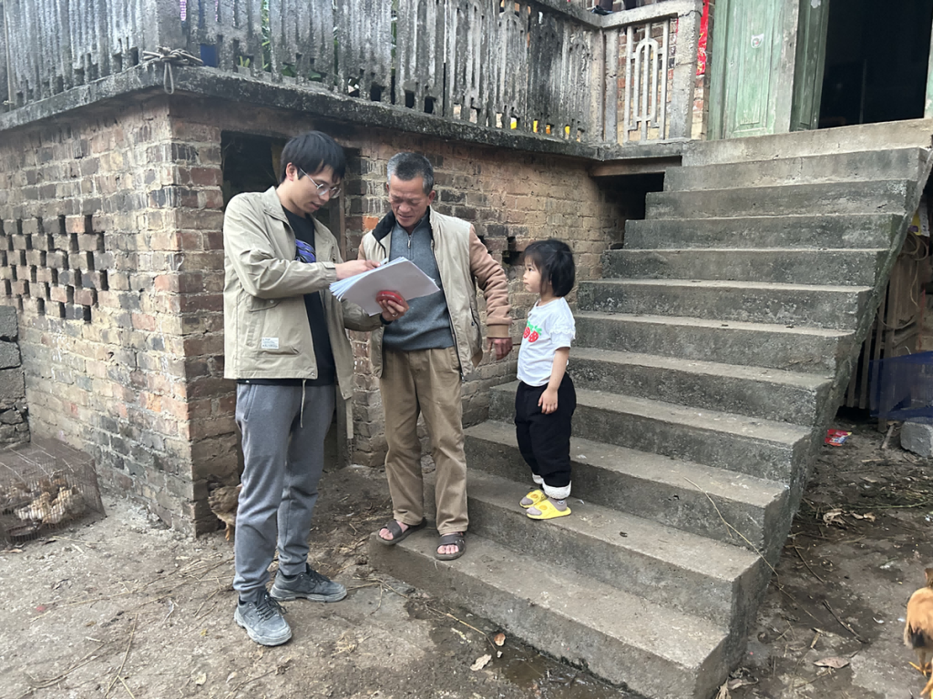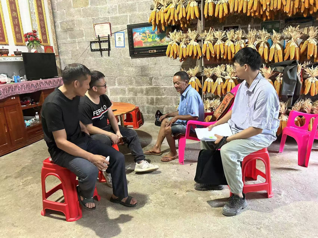 赖靓荣(右一)走访农户。( 达腊村村委会 供图)