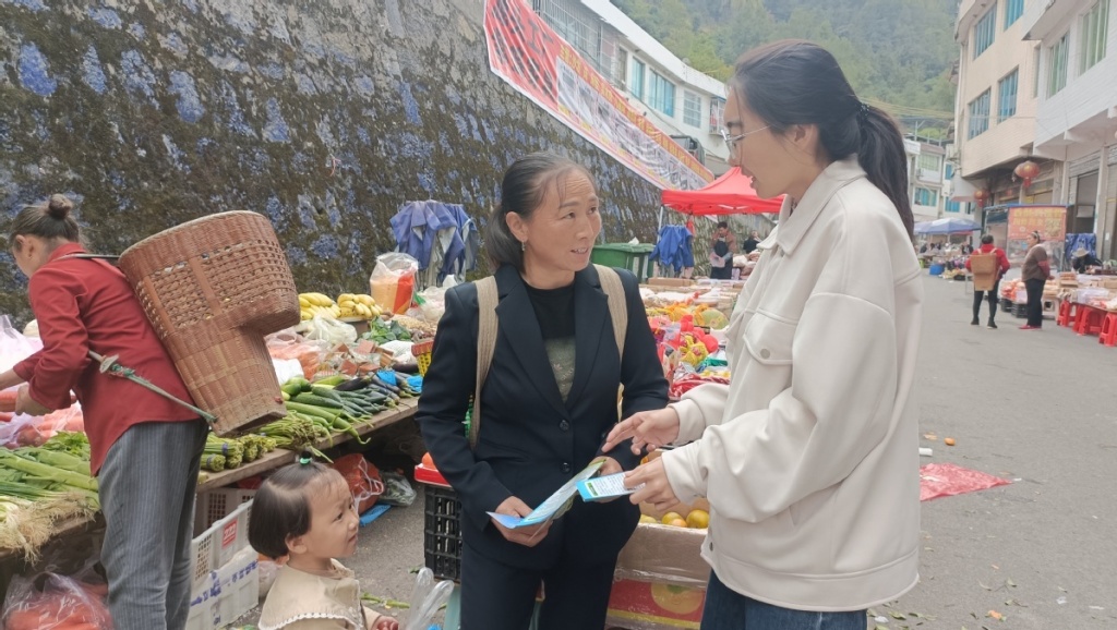 彼时正逢跟场天,为了让我了解村里的生活,村干部们便带着我一起去老街做宣传,发放相关资料。然而,操着一口普通话,顶着一张稚嫩又陌生的脸孔实在难得村民的信任,大家纷纷摆手不愿与我多交谈,深深的挫败感笼罩在我心头。我暗下决心,一定要尽快“听得懂”“讲得出”。村党总支书记察觉到我的焦虑后,便开始带着我在走访入户中破解方言“密码”。从最初村民们询问“这个妹从哪里来啊?”“哦哟,从山西那么远的地方来这里习惯不?”等问题时我张不开口回应,到如今我已经能够游刃有余地使用当地方言与村民们话家常。随着口音的转变、身份的融入,我开展工作也愈发有了底气。