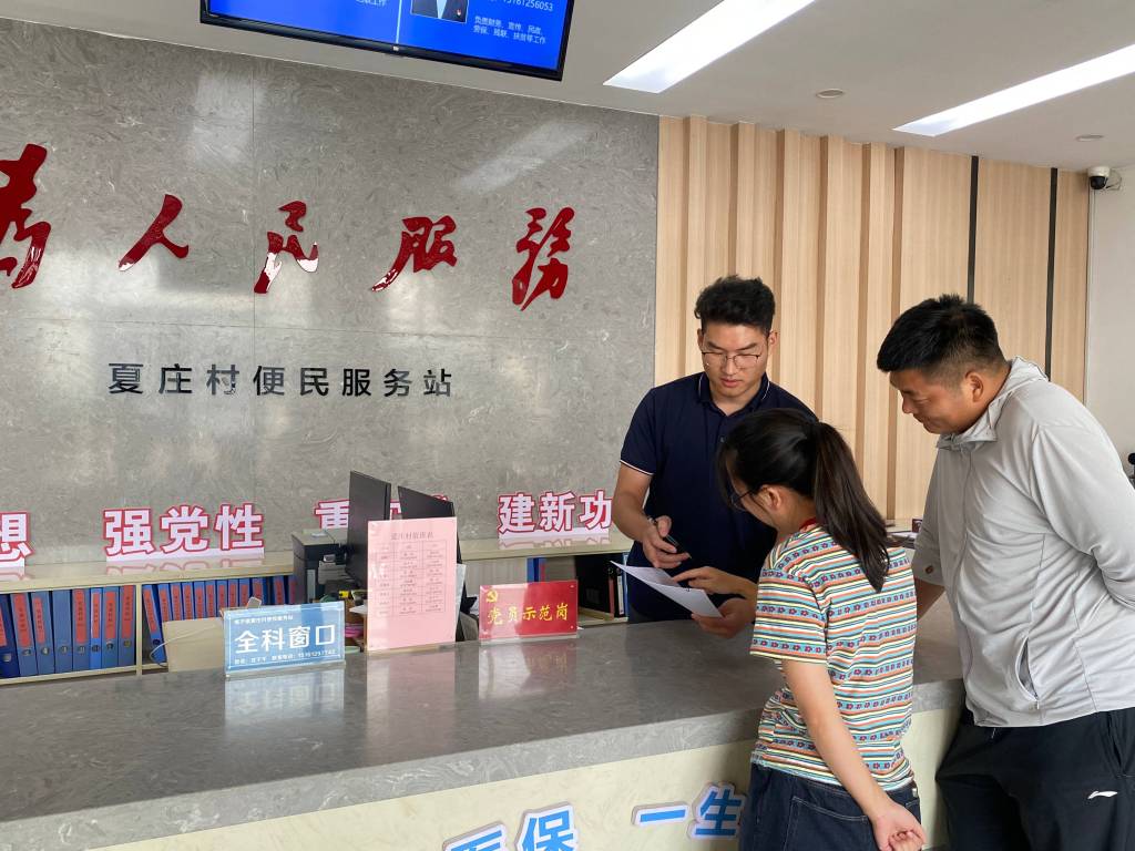 图为选调生徐乐(左)在村党群服务中心为村民讲解政策。张佳平 摄