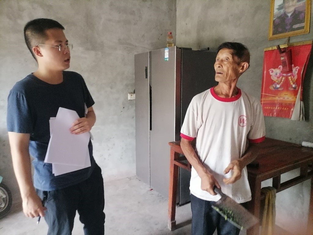 李濡宇(左)前往村民家中摸底面貌改善情况。(兰家寺村村委会供图)