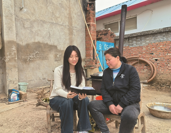 黑梦阳(左)入户宣讲。 (胡李张村供图)