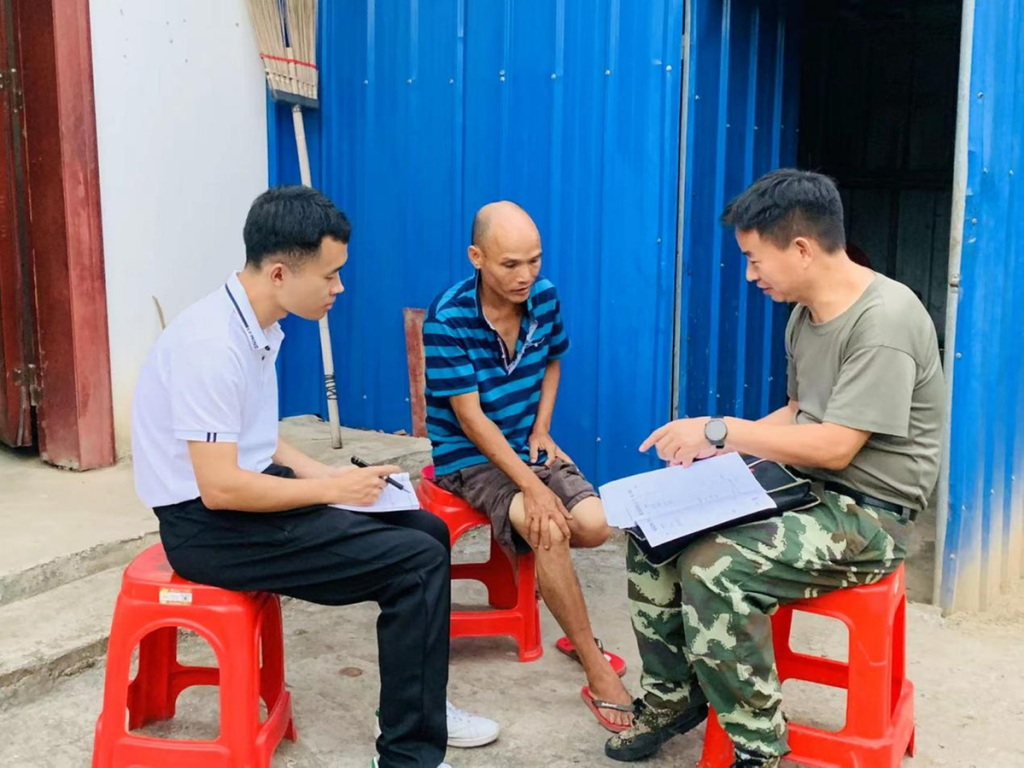 李俊杰(左一)入户走访农户基本生产生活情况。(李金领 摄)