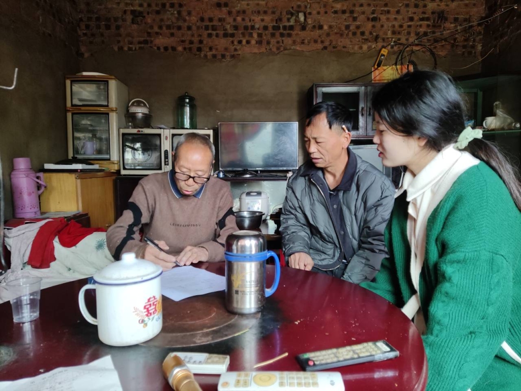 一到村,我发现最频繁的事情就是调解矛盾纠纷,不是两口子闹矛盾、就是这家占那家地,不是那家挖了这家田坎就是这家牛吃了那家玉米……刚开始,我对化解矛盾纠纷无从下手,一听到网格内有人闹矛盾就感到头痛,生怕小矛盾引发大危害。但这是极为重要的工作,也是作为驻村干部、网格员的“必修课”。于是,但凡其他网格有人处理矛盾纠纷,我便跟着去,听大家怎么开场、怎么调和氛围。现在,面对矛盾纠纷我也有了解决的办法,只要网格内有情况,大家都会第一时间打电话给我。村民之间偶尔的小吵小闹,我就充当“润滑剂”从中调和,增进和谐。
