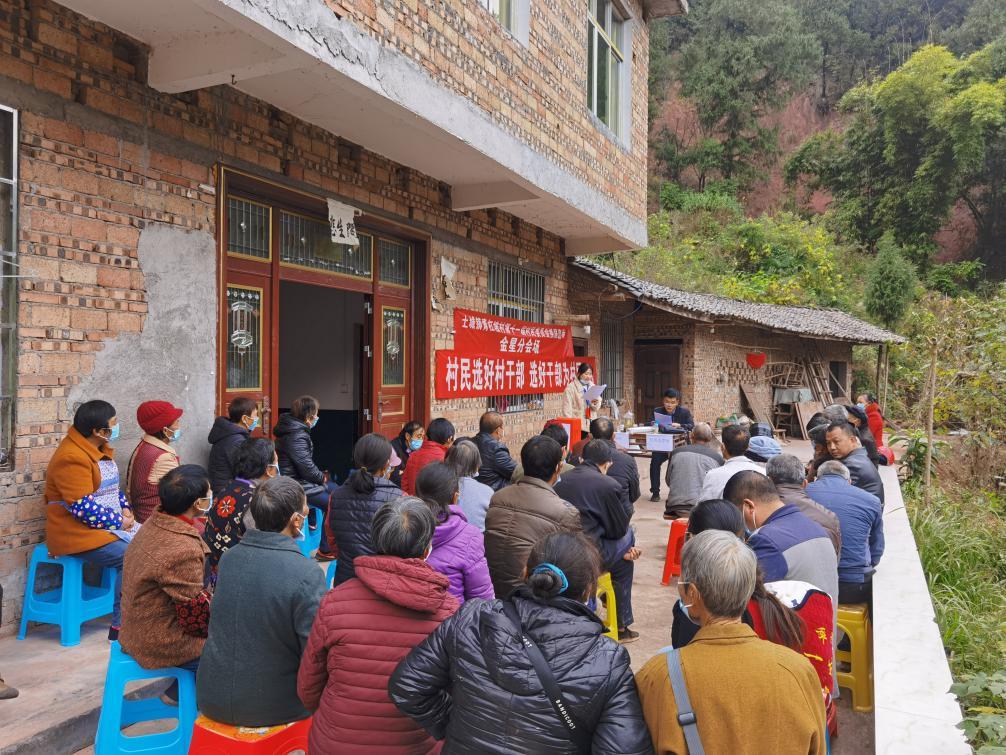 陈中明(主席台男)让罗玉(主席台女)主持村民委员会换届选举大会(资料图)