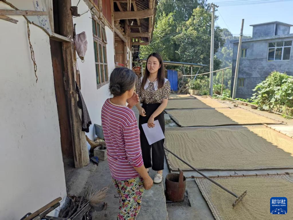 2021年9月22日,安玉玲(右)到汆塘村农户家中走访。(受访者供图)