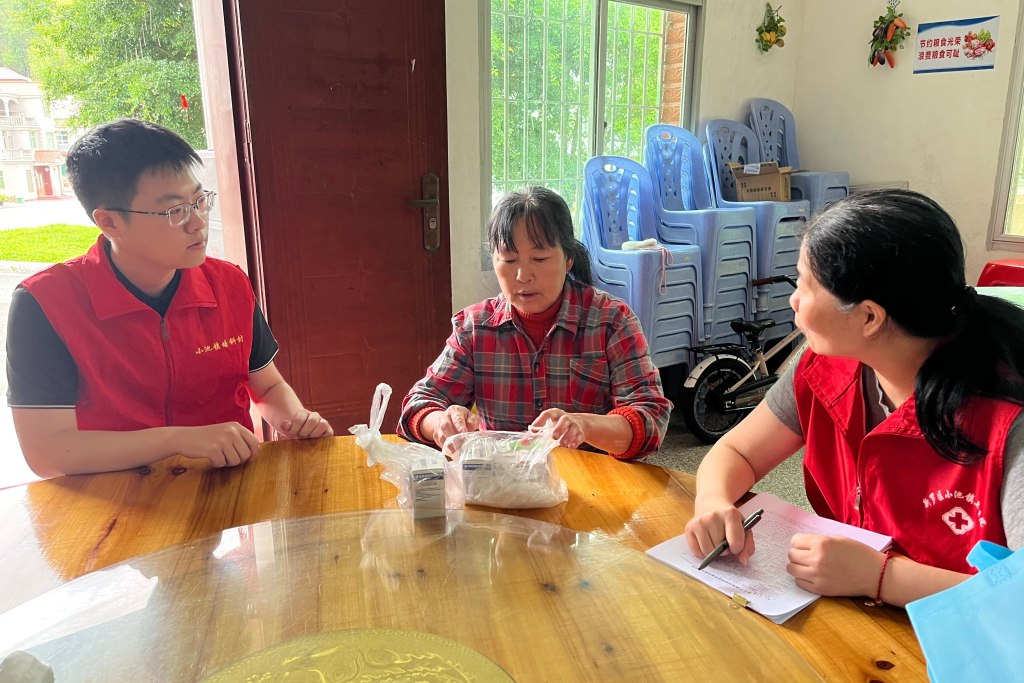 罗越(左一)走访村民。(作者供图)