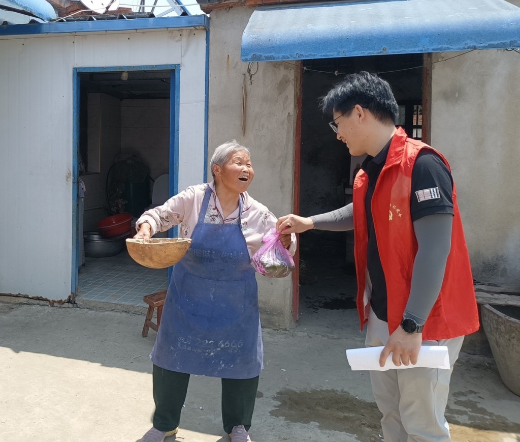 陈朝臣(右)走访村民。(柳沟村村委会供图)