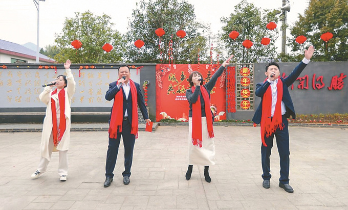 与此同时,为推进乡村文化振兴,促进文旅深度融合,我们创新开展内容丰富、形式多样的新春文艺活动,用充满乡土气息的“村晚”,让村民和游客感受到浓浓的年味。2024年2月24日晚,上百位村民聚在一起舞龙、放烟花、表演节目。我便当起了“移动喇叭”,带大家沉浸式体验演出。从节目编排到场地布置,从宣传造势到迎来送往,与乡亲们并肩忙碌至深夜的场景至今历历在目。
