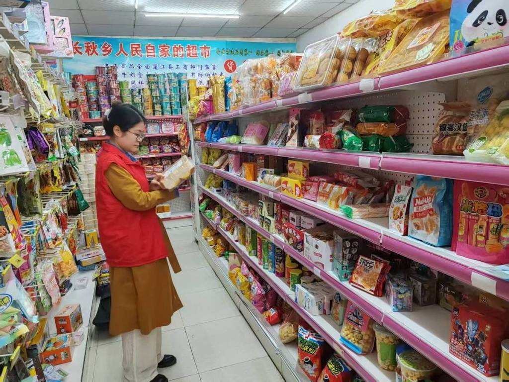 刘鑫在村里进行食品安全检查。(长秋村村委会供图)