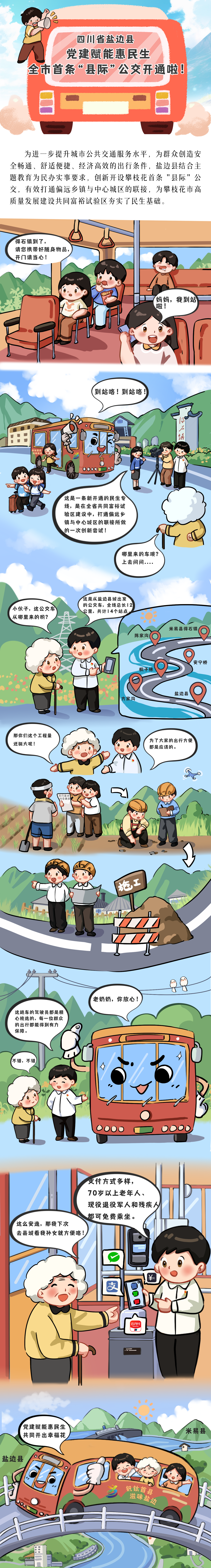 【漫画投稿】党建赋能惠民生 全市首条县际公交开通啦!