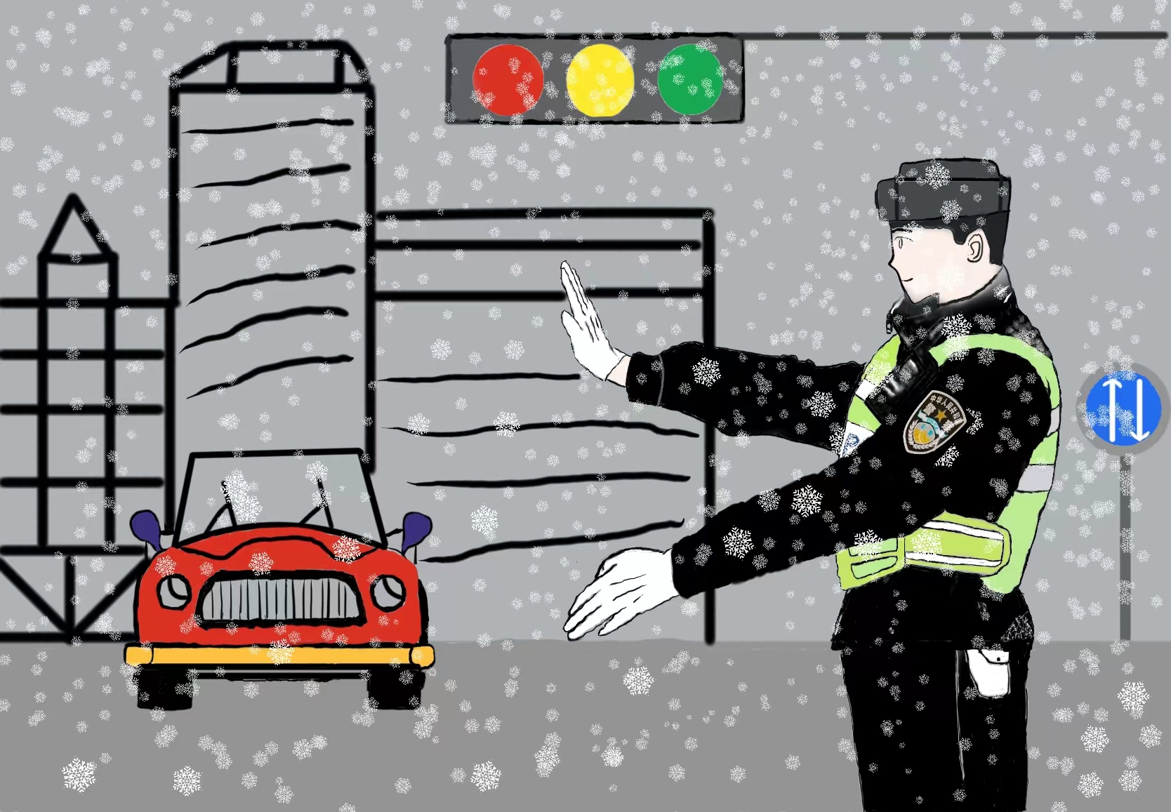 他们循着风雪的方向而来,向着车流的方向而去。他们站成高耸的灯塔,指挥着车辆行人有序而行;他们不顾脚下泥泞,每每搀扶跌倒的每一位群众。严寒刺骨,警徽却温暖着每一个行人。