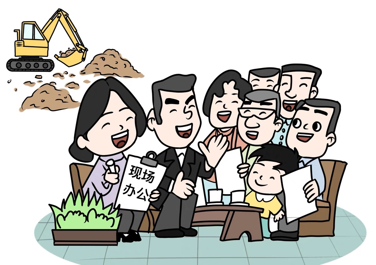 现场办公下基层,办事“四清六活”,做枝叶关情的“暖心人”。从“办事跑断腿”到“最多跑一次”,现场办公,接诉即办,是为民服务的使命宗旨最好的阐释。一声“钉”铃,部门联动,群众困难解决更加简洁高效;一条热线,“接诉即办”,群众诉求回应更加快捷方便。“现场办公”是怀“赤子心”,拂“两袖风”,做“孺子牛”,是在法律允许的情况下“特事特办”,在时限宽裕的情况下“马上就办”。群众的眼睛是雪亮的,群众的心底都有一杆秤,只有“摒弃私心”“出于公心”,才能做好现场办公“大文章”。