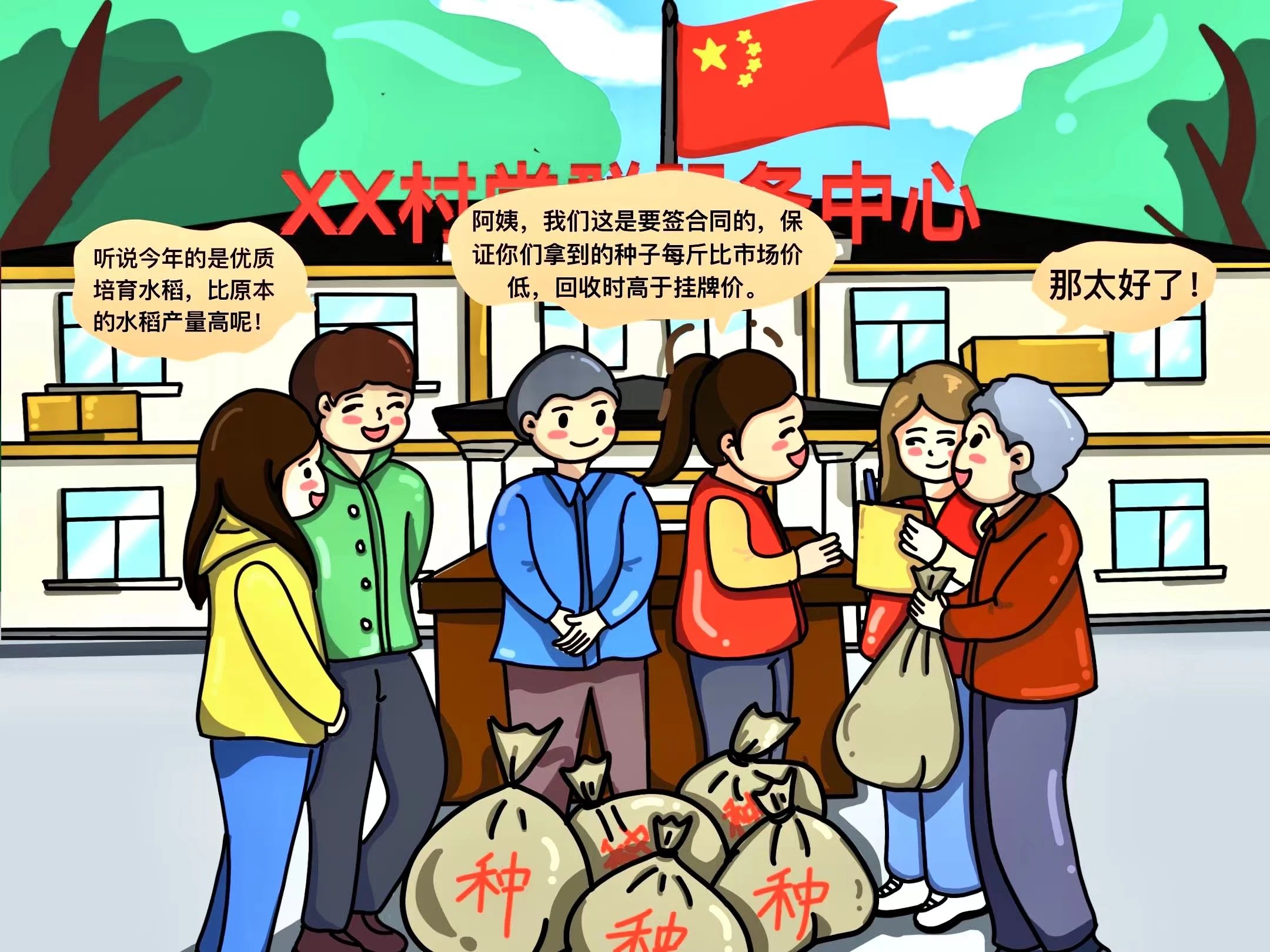 “利益联结”助力惠农增收。大力推广“订单式”农业,采取“公司+村集体经济+农户”运营模式,引导公司与农户、村集体签订购销合同,以低于市场价每斤6元的价格统一发售谷种,以高于挂牌价每斤0.2元的价格统一回收稻谷。实现企业与农户共享产业链增值收益,提升农户种粮积极性。截至目前,带动3000余户农户连片种植水稻1.7万余亩,预计每户年均增收超3000元。