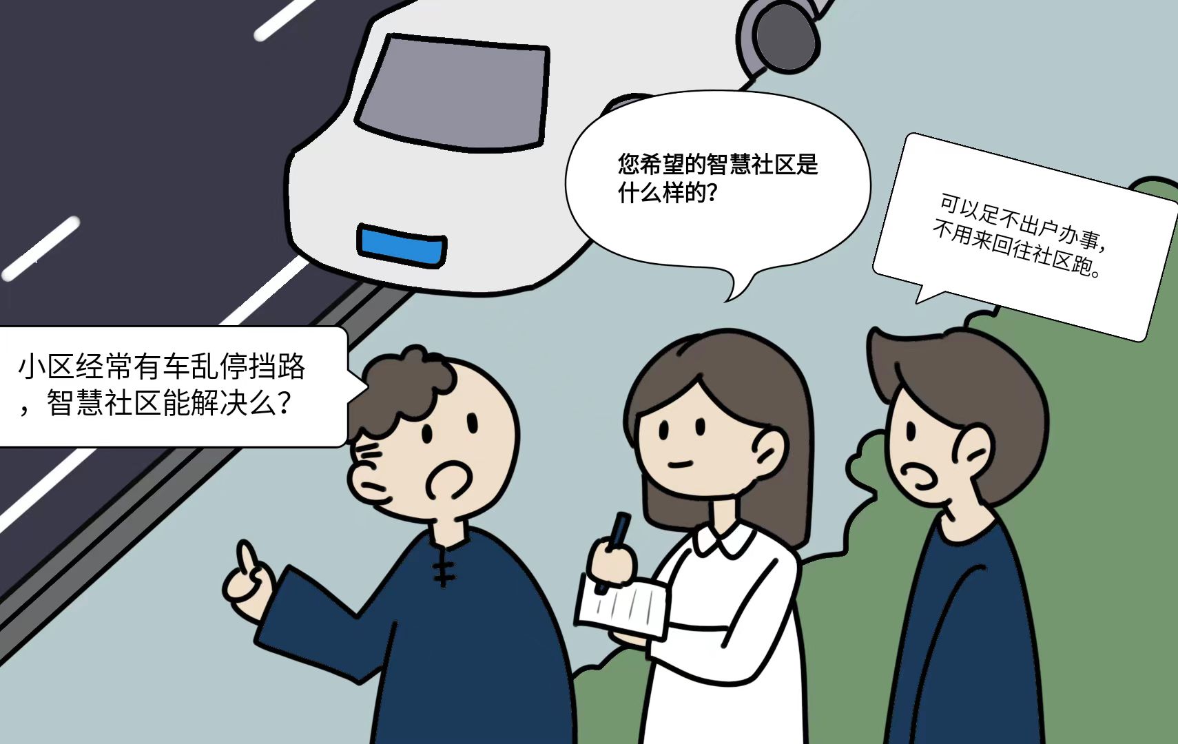 2023年4月,经会议商讨决定以智慧社区建设为题后,时常能看到我在社区里拿着笔记本向居民收集意见的身影,我想知道居民心中的智慧社区应该是怎样的,到底他们的需求是什么,我们能不能通过智慧社区解决他们急难愁盼的问题,让他们的生活更便捷?这是我在工作中常常思考的一个问题。而在与居民的沟通中我的方言水平也有所提升,大家也渐渐认可了我这个外地来的小姑娘。