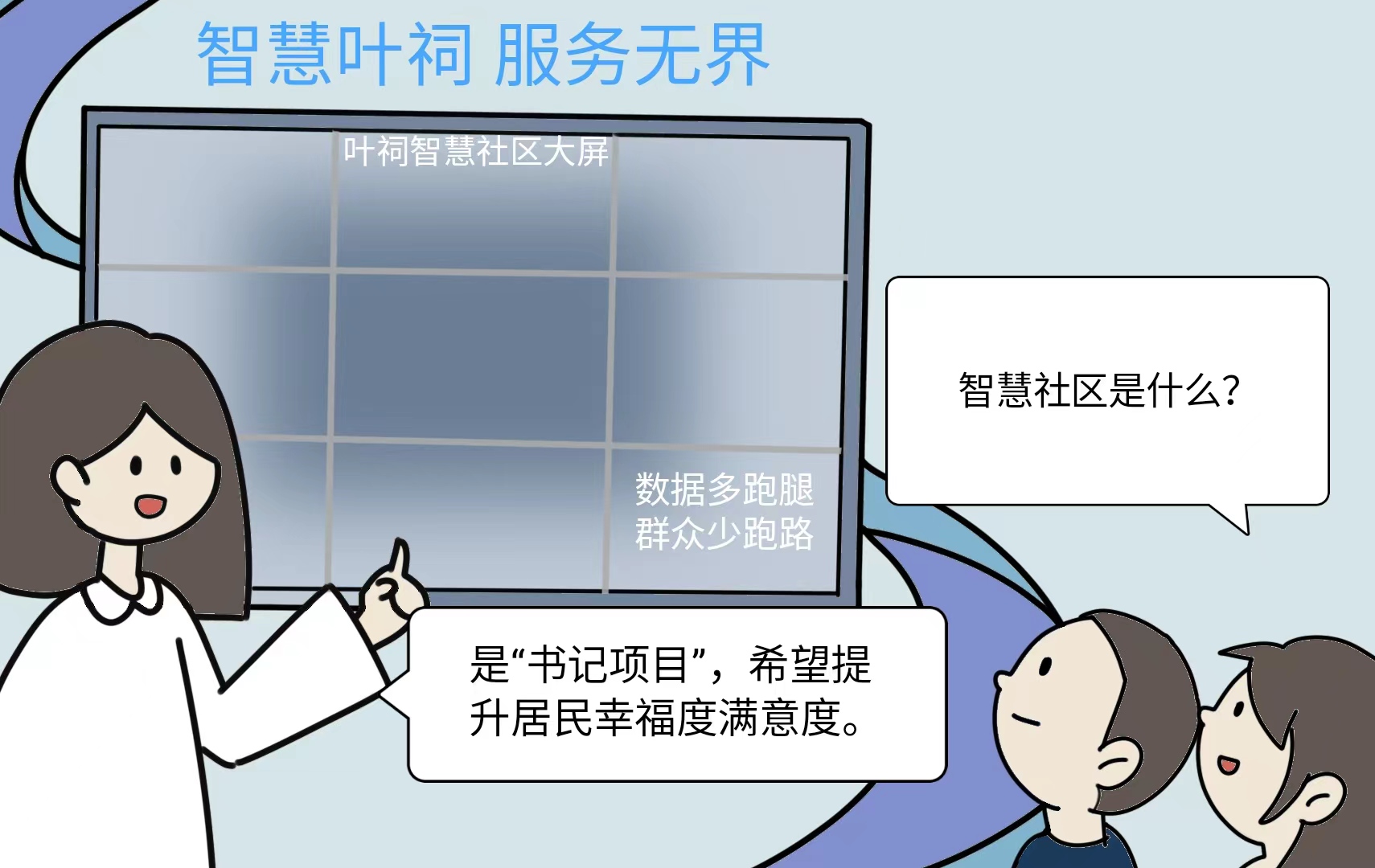 2023年7月,智慧社区“书记项目”建设完成正式运营。从“书记项目”的调研开始到后面的立项、调整、征求意见、确定实施方案,最终建设完成,我第一次从零开始完成了一项工作,与开发团队的一遍遍沟通与调试,邀请居民参与试用版程序时内心的忐忑到智慧社区程序正式上线运营的激动,都化为我站在大屏前介绍的自信与自豪。