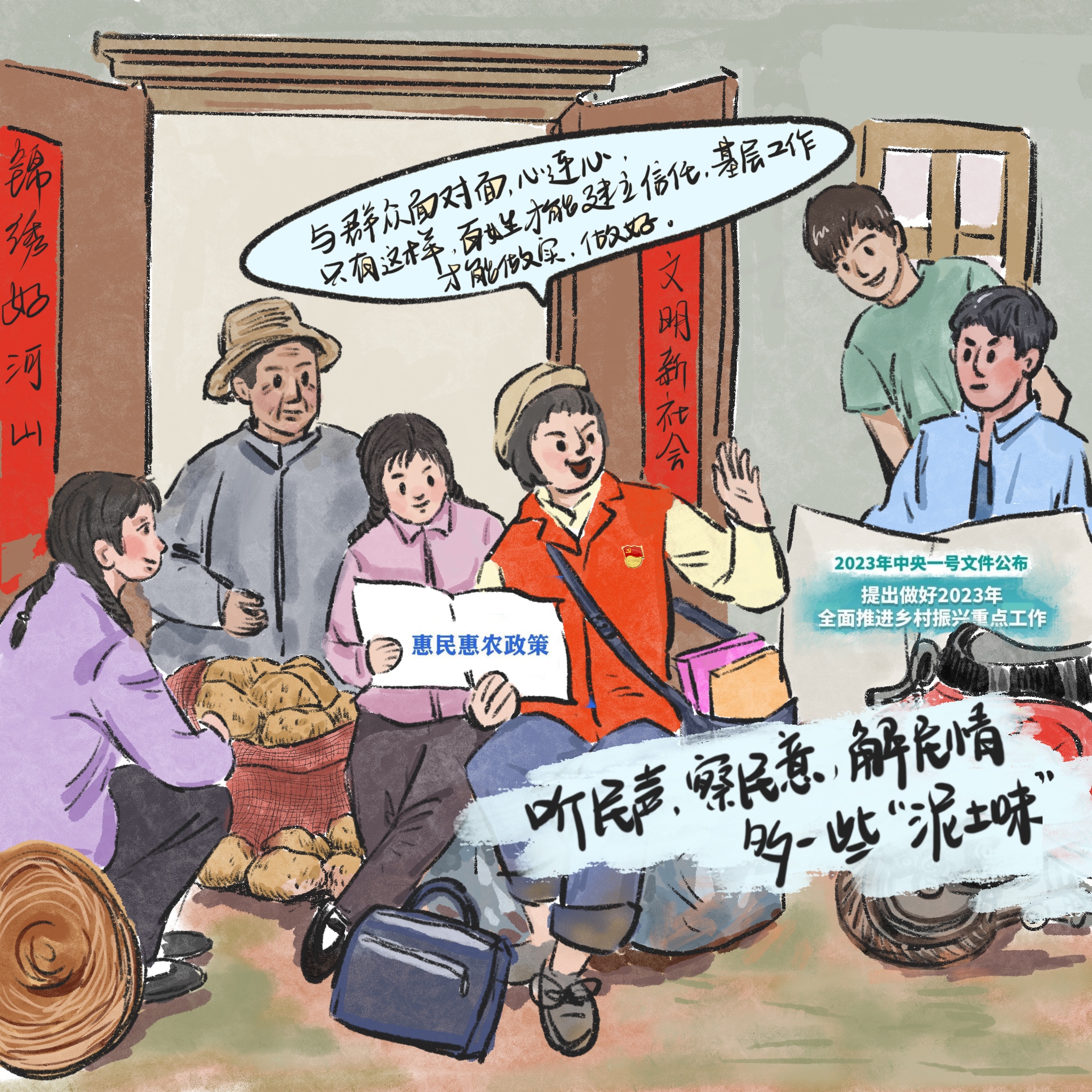 一是脚裹泥巴的“泥土味”。他们经常下村入户,到田间地头宣传政策,到农家院落倾听民民声、了解民意、纾解民困,用双脚“丈量”民情,脚上沾满泥巴,具有浓郁的“泥土味”。
