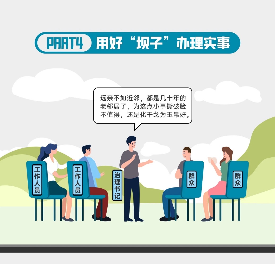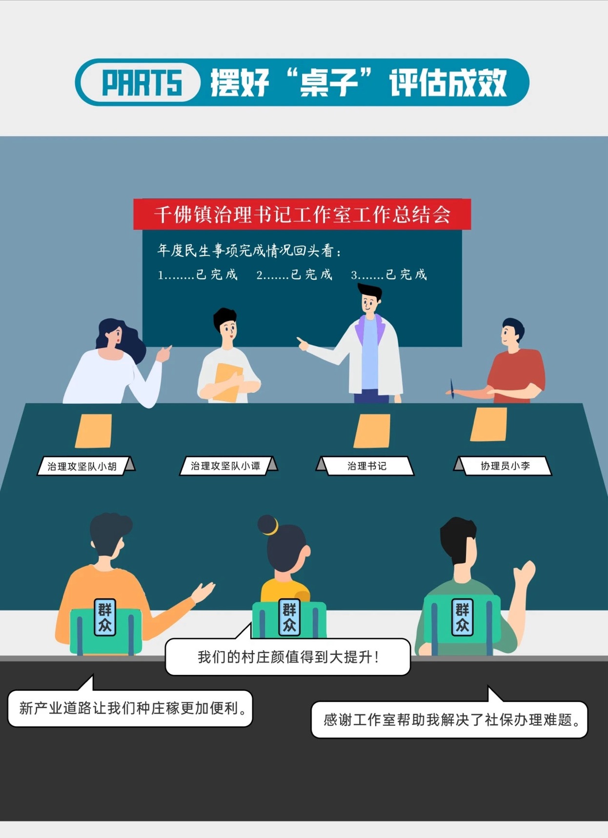 “治理书记工作室”凝聚多方“治理力量”,由镇(街道)党组织书记担任“治理书记”、到村任职选调生担任“协理员”、村(社区)党员干部担任“攻坚队员”,聚焦群众关切的民生事项,通过建立“问题清单”问需、“项目清单”务实、“评价清单”问效,搭建党员干部和群众之间沟通交流的桥梁,促进群众关切的难点、堵点、痛点问题有效解决,推进社会治理形成共建共治共享的良好局面。
