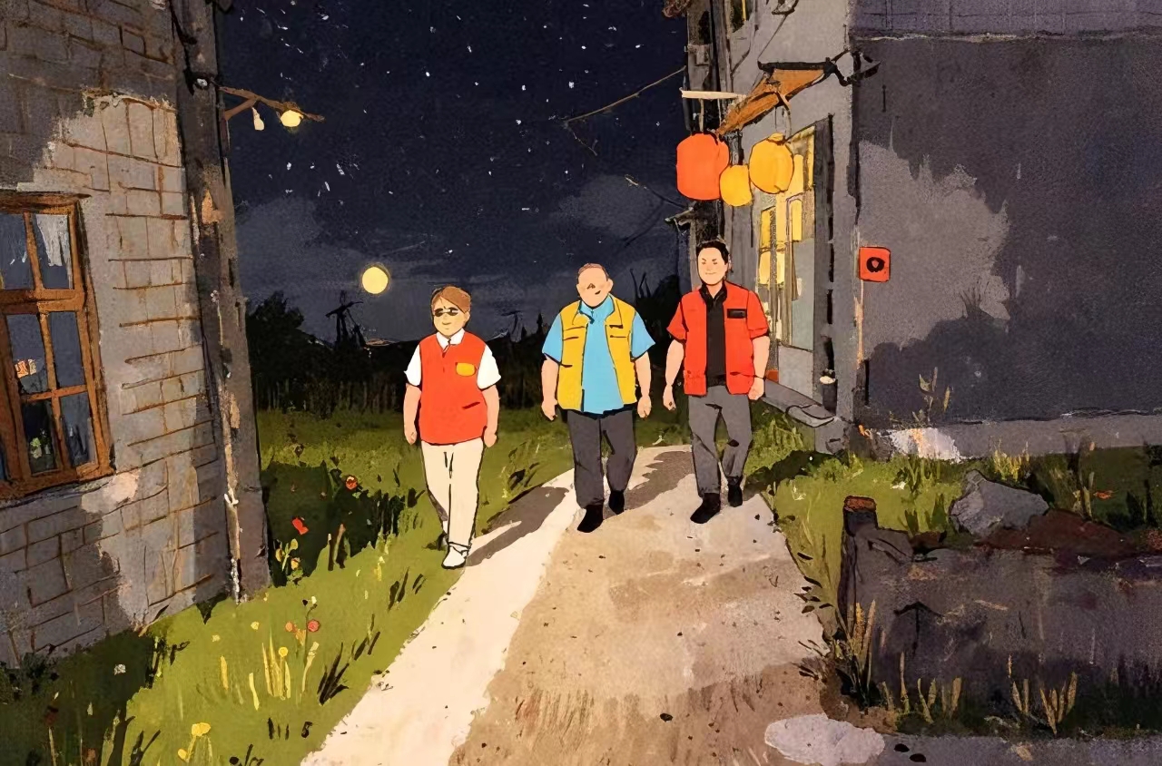 【21:00】每周二是村里组织夜巡的日子,我跟着老支书漫步在村里的每条小径,沿路遇到的村民们还会热情地招呼我“吃饭没”,再和我闲谈几句。日复一日的坚守,我也逐渐从一个“外来户”变成“村里人”。